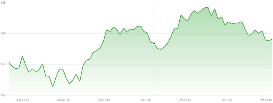 - The intraday high is 664.46 USD and the intraday low is 649.49 USD.